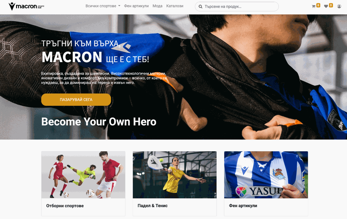 SportHero is an established brand focused on trading official equipment and sports items from the Italian brand Macron – one of the leading suppliers of clothing for professional and amateur sports clubs in Europe. SportHero works with both end consumers and professional organizations in Bulgaria, offering customized solutions for teams, referees, and sporting events.